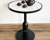 bàn cafe sắt decor 25 được thiết kế theo hướng hiện đại với chân đế hình trụ chia làm 2 tầng khác nhau, có cấu tạo liền nguyên khối kết hợp bàn trang trí mặt gạch mỹ thuật hiện đại với các hoạ tiết trang trí đơn giản.