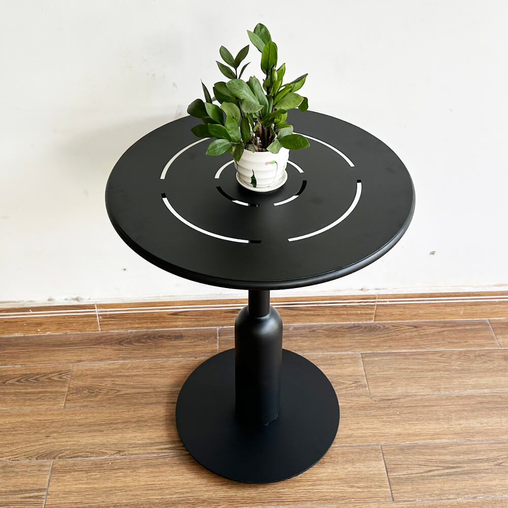 Bàn cafe sắt ngoài trời mặt sắt nguyên tấm khoét rãnh bằng máy cnc cho độ chính xác cao, hoạ tiết sắc nét.