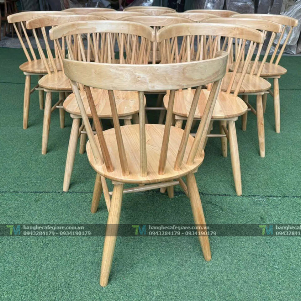 Thiết kế độc đáo: Tựa lưng uốn cong, đan nan gỗ tinh xảo, tạo điểm nhấn ấn tượng cho không gian.