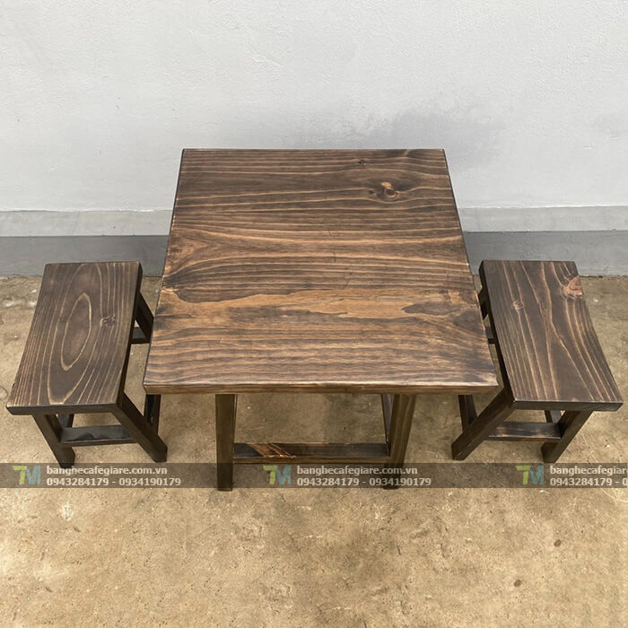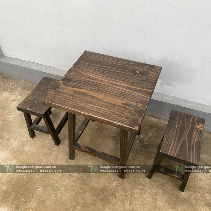 Bàn Ghế Cafe Gỗ Thông Vintage