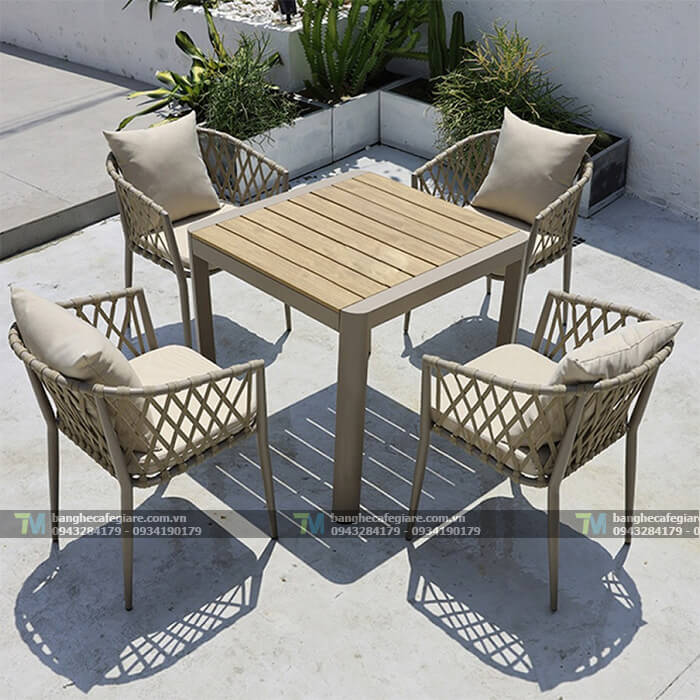 Bàn Ghế Cafe Ngoài Trời Khung Nhôm Đan Dây Cao Cấp