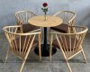 bàn ghế gỗ cafe Genny được làm từ gỗ caosu tự nhiên màu walnut hoặc màu natural tùy chọn, phần mê ngồi bọc đệm vải simili hoặc bố màu sắc tùy chọn theo yêu cầu thiết kế.