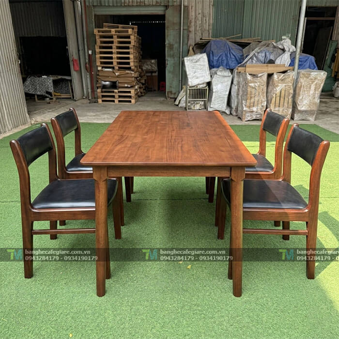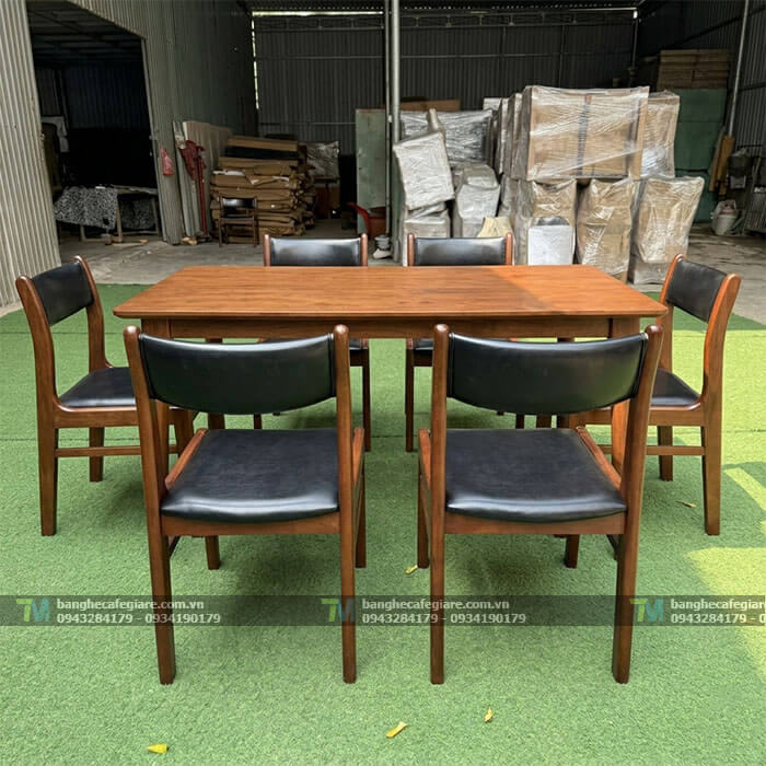 - Dễ dàng vệ sinh và bảo quản: Lớp sơn PU bóng mờ cùng chất liệu da Simili cao cấp giúp việc lau chùi sau mỗi lượt khách trở nên nhanh chóng, giữ cho bộ bàn ghế luôn như mới.