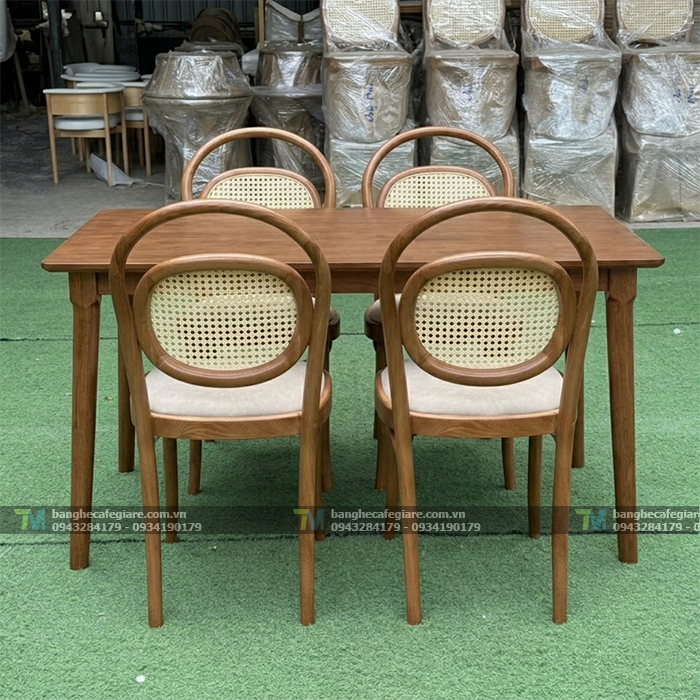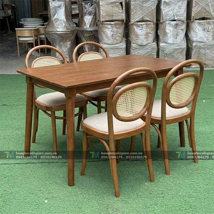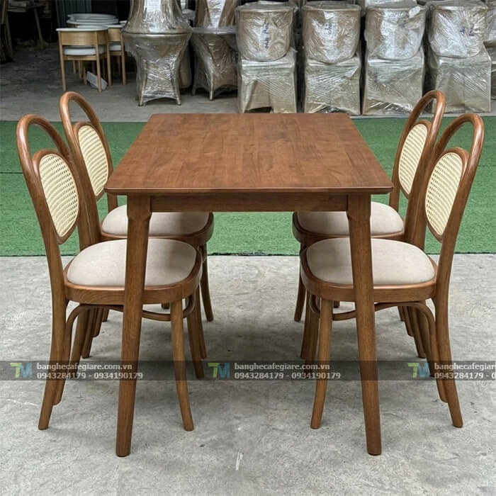 Bàn Ghế Gỗ Nhà Hàng Thonet 215R - Mẫu Bàn Ghế Dcor Nhà Hàng Quán Ăn Tựa Mây