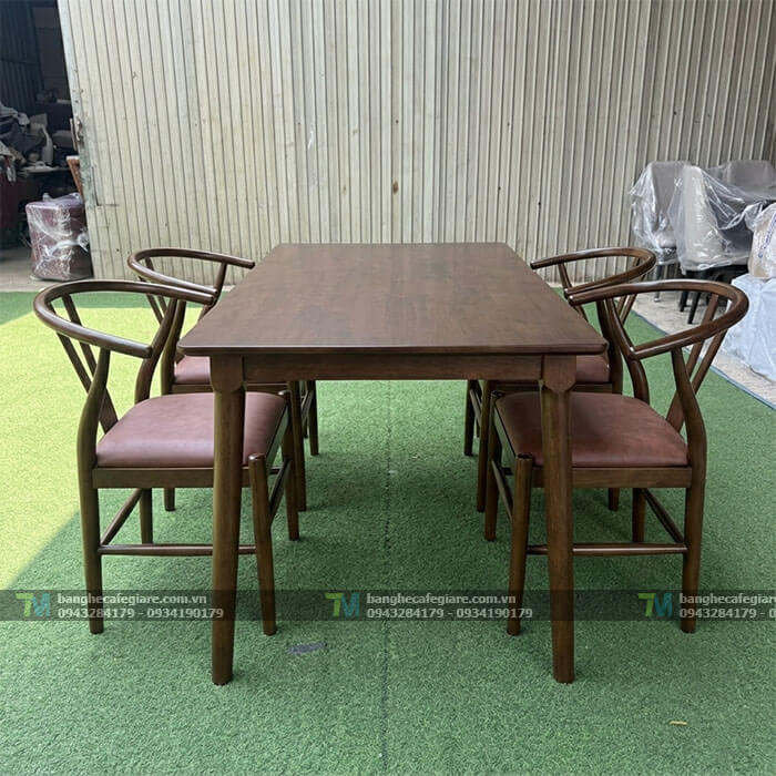 - Bàn Ghế Gỗ Nhà Hàng Wishbone Mặt Đệm