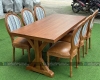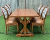 Kết hợp bàn gỗ nhà hàng theo phong cách indochine với chất liệu gỗ ash nhập khẩu cao cấp cho vân gỗ tự nhiên rất đẹp, chân bàn trụ đan nan dọc tinh tế. Mặt bàn bo cạnh tròn mềm mại.