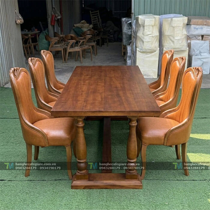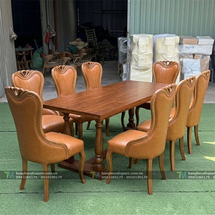 - Chất lượng chuẩn phòng VIP: Sự kết hợp giữa gỗ tự nhiên và đệm bọc cao cấp giúp không gian phòng ăn ngay lập tức trở nên chuyên nghiệp và sang trọng.