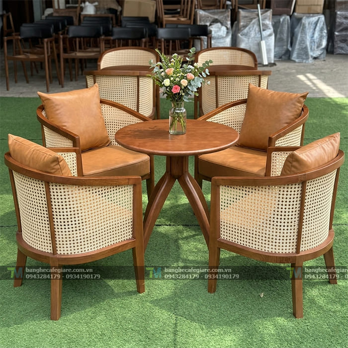 Bàn Ghế Sofa Cafe Gỗ Tựa Mây Nhựa Harvey - Bàn Ghế Sofa Cafe Decor Đẹp Năm 2026