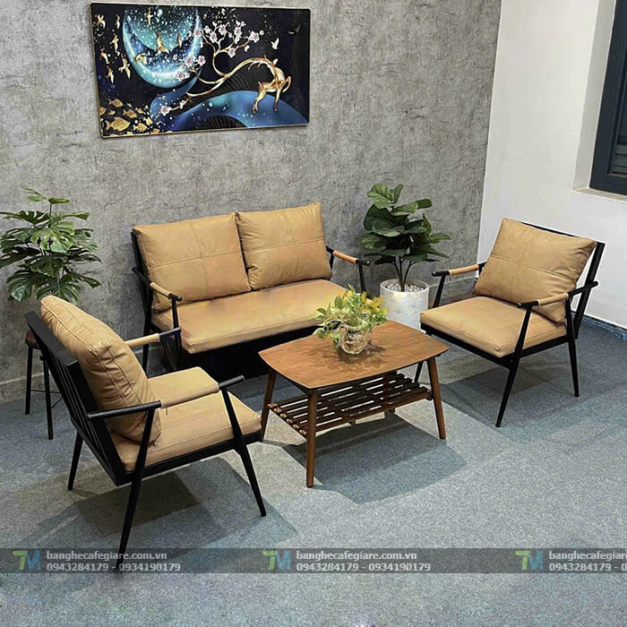 Bên cạnh đó, chất liệu sắt của bàn ghế sofa cũng là điểm mạnh của sản phẩm này. Với độ bền cao và khả năng chịu lực tốt, bàn ghế sofa sắt có thể sử dụng trong thời gian dài mà không cần phải bận tâm về chất lượng. Đặc biệt, sắt còn là chất liệu dễ dàng xử lý vết trầy xước và vệ sinh, giúp cho bộ bàn ghế sofa sắt luôn giữ được vẻ ngoài mới mẻ và sáng bóng. Kết hợp đệm ngồi bọc si màu sắc tuỳ chọn dễ dàng lau chùi khi đổ cafe hoặc thức ăn.