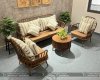 Chất liệu gỗ là yếu tố quan trọng trong thiết kế của bộ bàn ghế sofa gỗ decor. Gỗ là một chất liệu tự nhiên, mang lại sự ấm áp, sang trọng, đẳng cấp và độc đáo cho không gian quán cafe. Các họa tiết và chi tiết trang trí được chế tác nhẹ nhàng và mềm mại bởi các đường nét uốn cong và bo tròn một cách tỉ mỉ.
