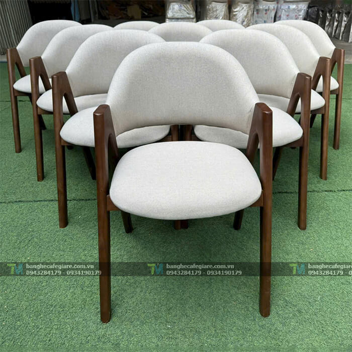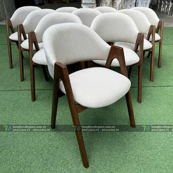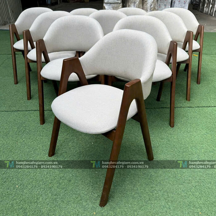 Ghế cafe bọc đệm chữ A thích hợp giành cho quán cafe hoặc trà sữa với diện tích vừa và lớn, ghế chữ A có thiết kế kết cấu chắc chắn, chống trơn trượt, kích thước phù hợp với trẻ nhỏ. Nhược điểm của ghế là tay ghế thiết kế liền với lưng nên bề ngang hơi hẹp người có thể trạng lớn khi ngồi bề ngang sẽ khá khó chịu.
