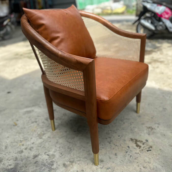 Điểm nhấn nổi bật của sản phẩm ở phần tựa lưng với khung gỗ uốn cong nhẹ nhàng kết hợp với tựa mây nhựa giúp người ngồi cảm thấy thoải mái không gây cứng tức lưng. Chân ghế bọc đồng nguyên chất rất sang trọng, mê đệm dày 8-10cm rất êm ái.