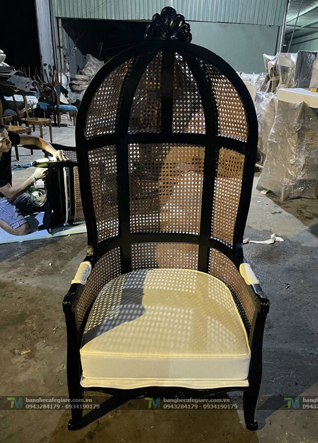 Tựa lưng được thiết kế uốn cong nguyên thanh không ghép nối giúp phô diễn tối đa các đường vân tự nhiên của gỗ, vừa tạo độ cong ôm sát lấy lưng người ngồi mang lại cảm giác thư giãn và thoải mái, các cạnh ghế đều được bo cong mềm mại tăng tính thẩm mỹ cho sản phẩm. Màu sắc ghế sofa linh hoạt quý khách tự chọn màu sơn cho khung ghế và màu vãi sofa, giúp linh hoạt hơn trong thiết kế. Lấy cảm hứng khắc hoạ tương tự như chiếc lồng chim trong các câu truyện cổ tích Châu Âu ghế Baloon như một sản phẩm decor trang trí cho những ai yêu thích phong cách thiết kế tân cổ.
